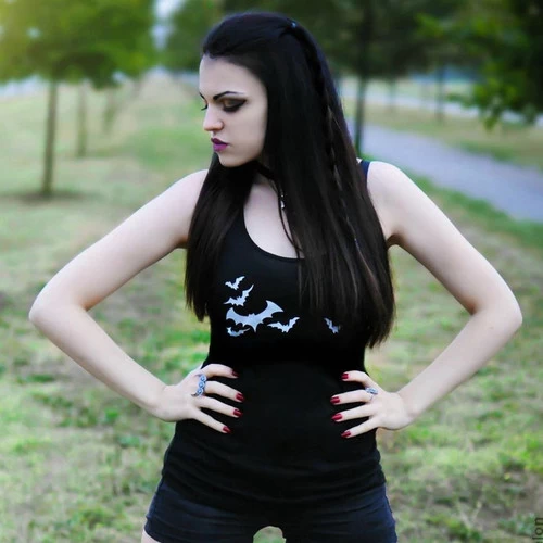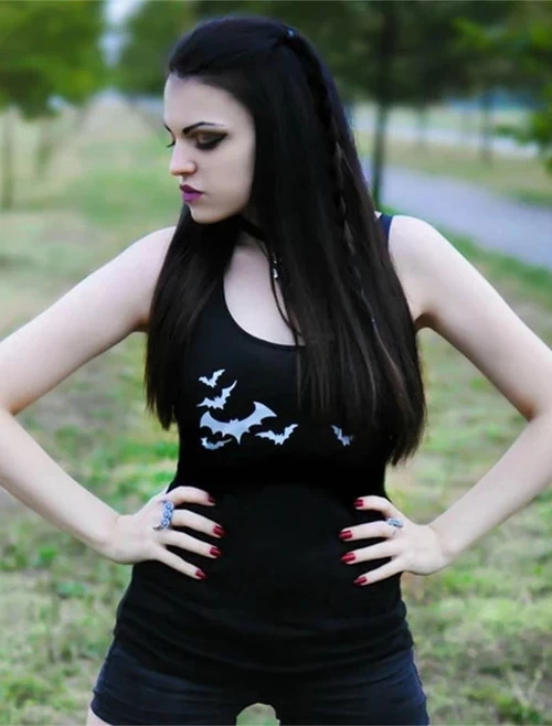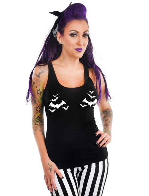 A basic black tank and bats are staples of any goth girls wardrobe! Fly into the darkness with the flying bats tank.