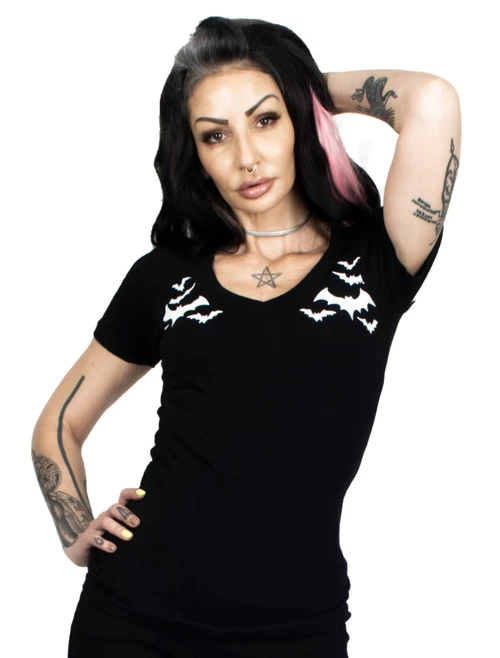 - The basic black tee and bats are staples of any goth girls wardrobe.