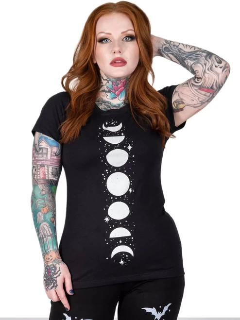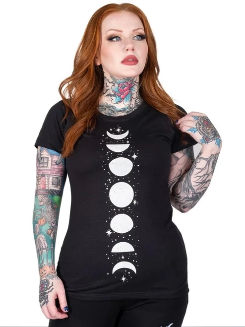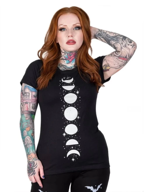 Be a bold moon child in this fun starry moon phases printed tee!