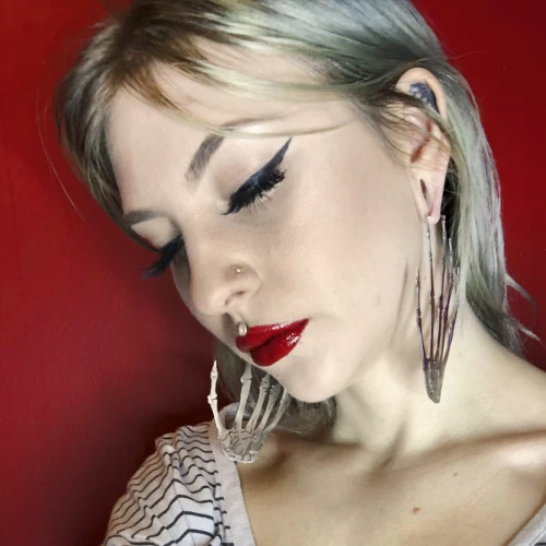 - Large skeleton hands earrings.