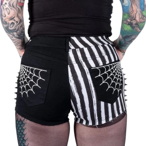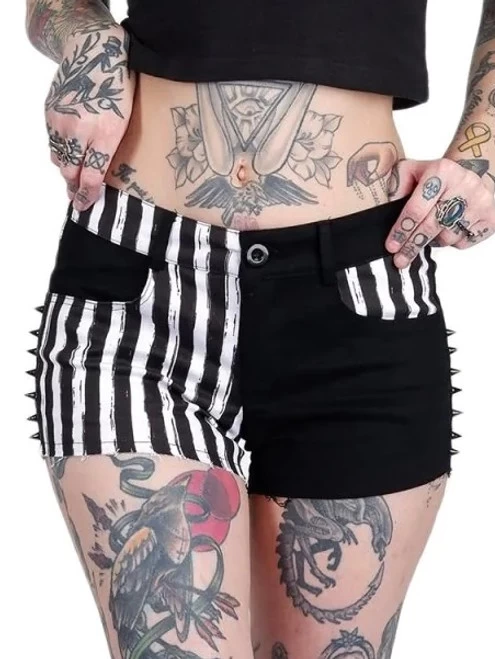 Our jean shorts are made of comfy, stretchy cotton denim. They are detailed with black spikes along each side. The edges are unfinished to give them that classic distressed look we love. In these shorts, you’re dressed to kill.
