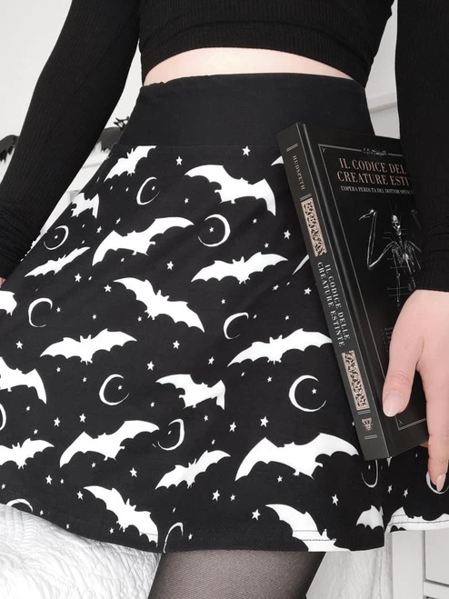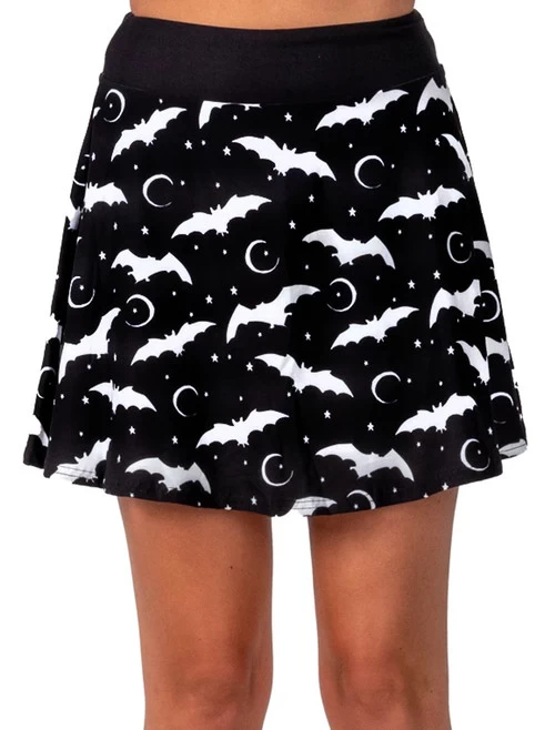- If you’re in outer space, don’t feel out of place, cause there are thousands more just like you…there’s a moon, it’s in the sky and it’s called the moon. There’s also a sky in the moon and it’s called bat, at least we think so 🙂 This skirt has a soft touch and smooth fit with flare for days, just take a spin! This high-waisted mini skater skirt features a 3″ waistband and an extra easy fit! This skater is seamless, smooth & super flattering!