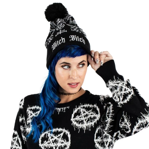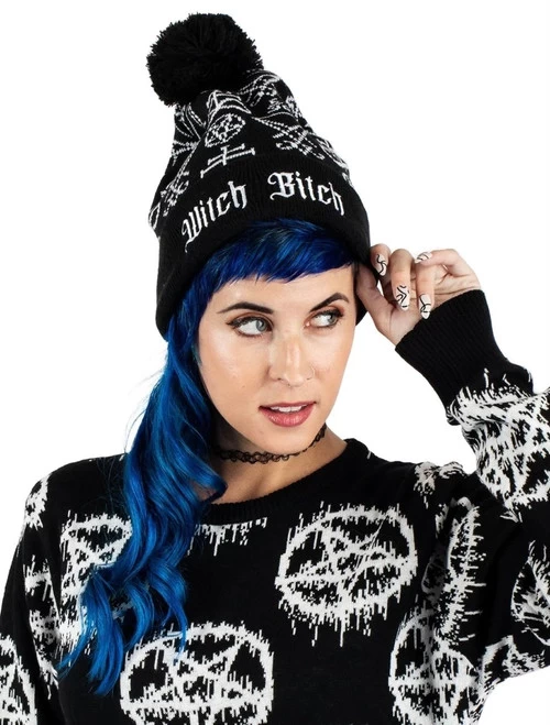 This one is for all the bitchy spell casters out there, you know who you are! Scare away all the creeps and ghouls in this mysterious pom-pom beanie. Magical and witchy¬†winter wear?? HELL YEAH! Stay warm in style with these soft, stylish beanies. The pom-pom adds a cute touch, don’t you think? These are one size fits most.